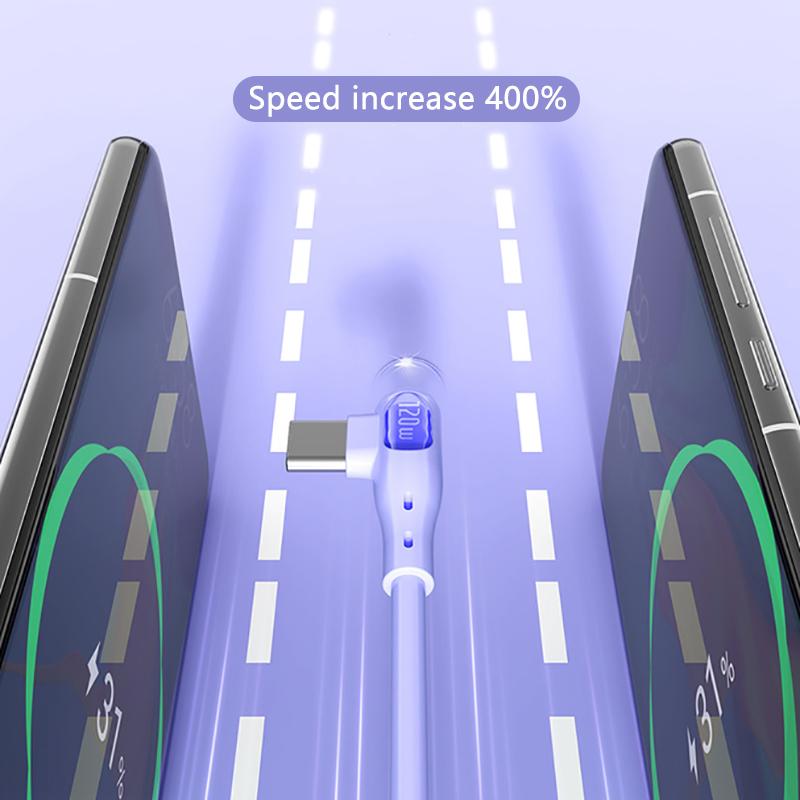 Зарядный кабель USB-Type-C 120 Вт 6 А, суперзарядный кабель для передачи данных, изогнутая головка 90 ° для быстрой передачи данных для игр Xiaomi Huawei