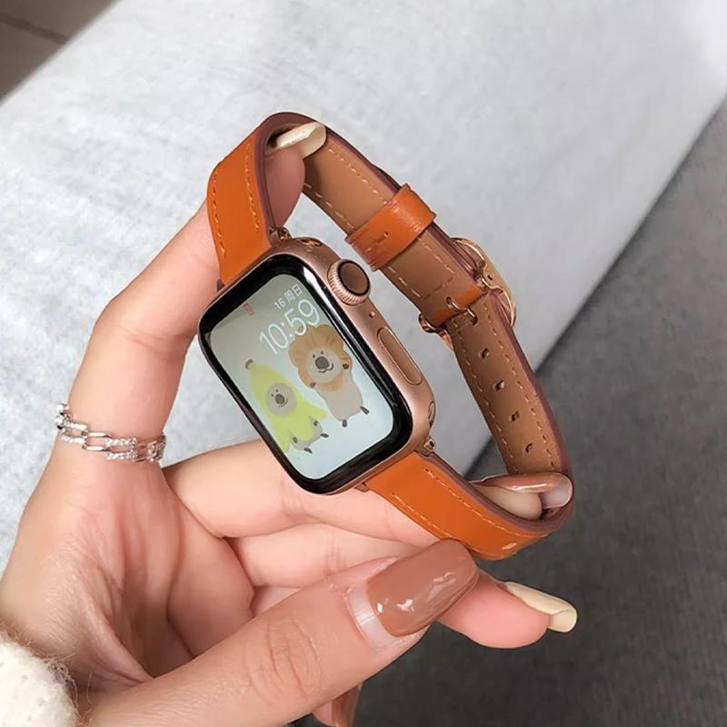 Ремешок для часов Тонкий кожаный ремешок для Apple Watch Band Ultra 49 мм 44 мм 42 мм 38 мм 41 мм 45 мм женский браслет для iWatch Series Se 8 7 6 5 4 3 2 1