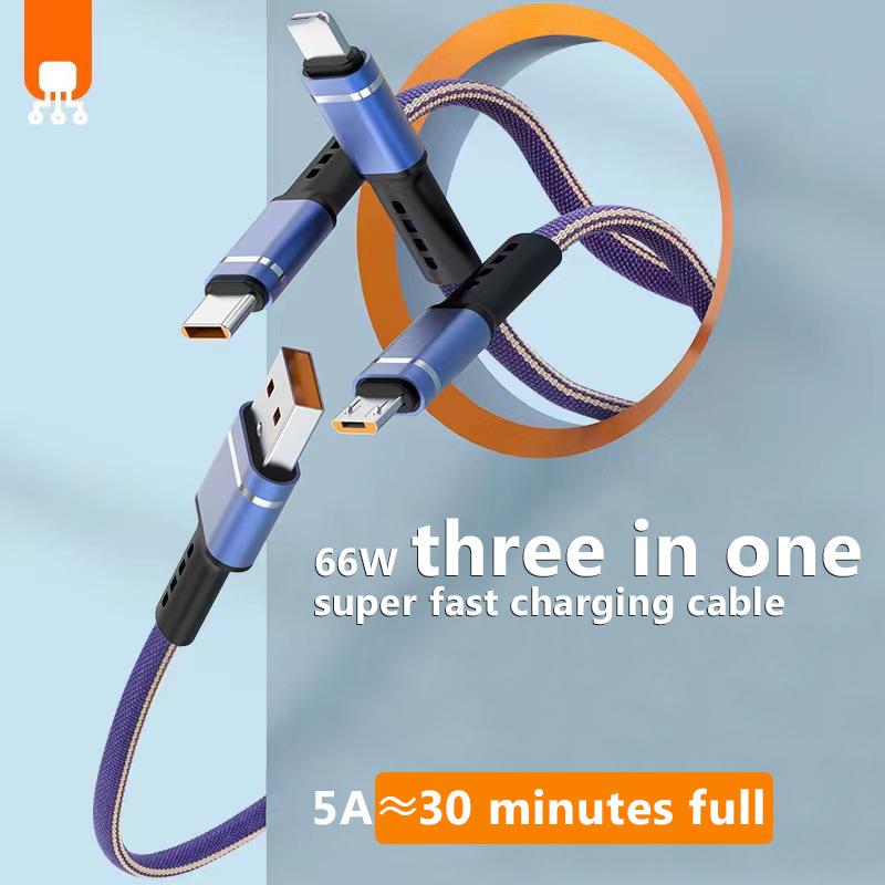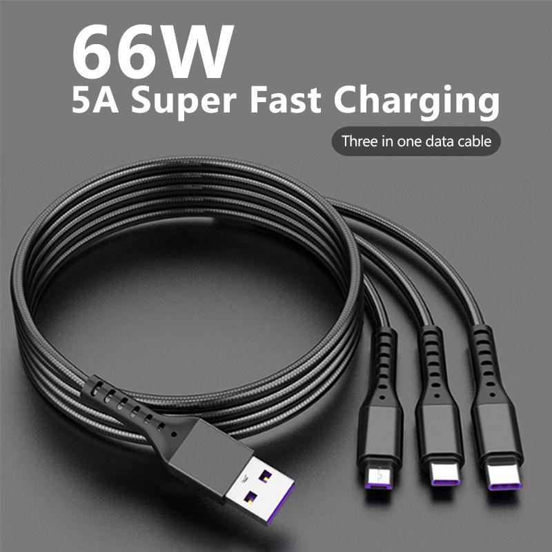 3 в 1 кабель для передачи данных Высокое качество 66 Вт Супер быстрая зарядка Один диск Три кабеля для передачи данных 5A кабель для зарядки