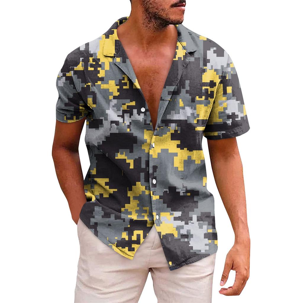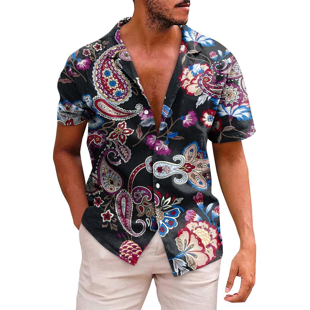 Мужские гавайские рубашки с короткими рукавами и пуговицами с принтом. Мужские повседневные модные рубашки с короткими рукавами.