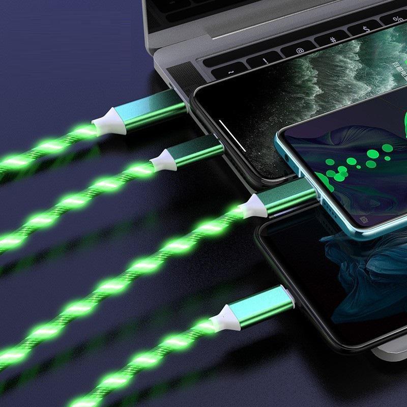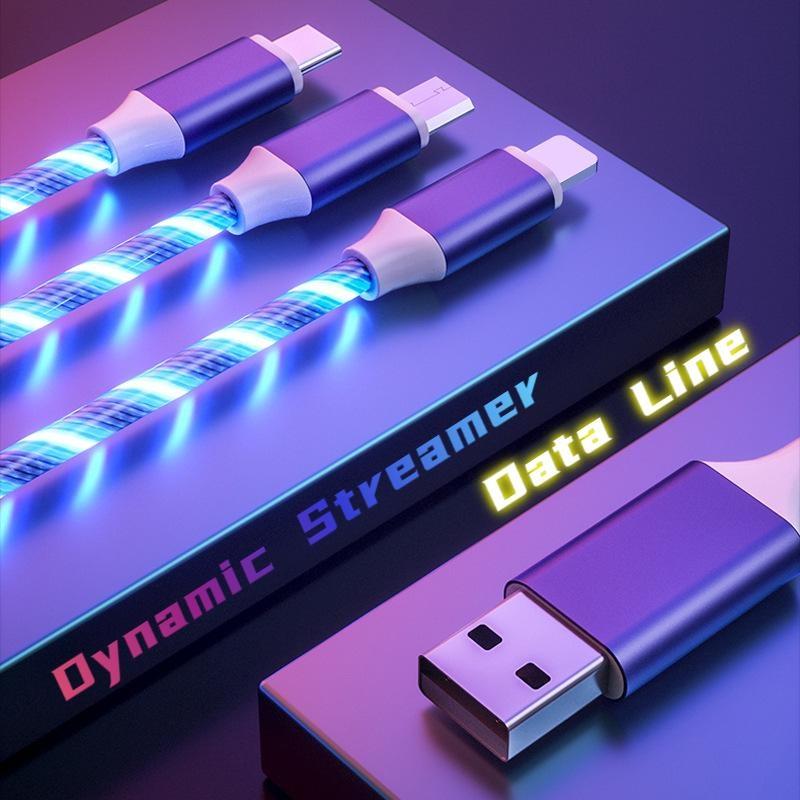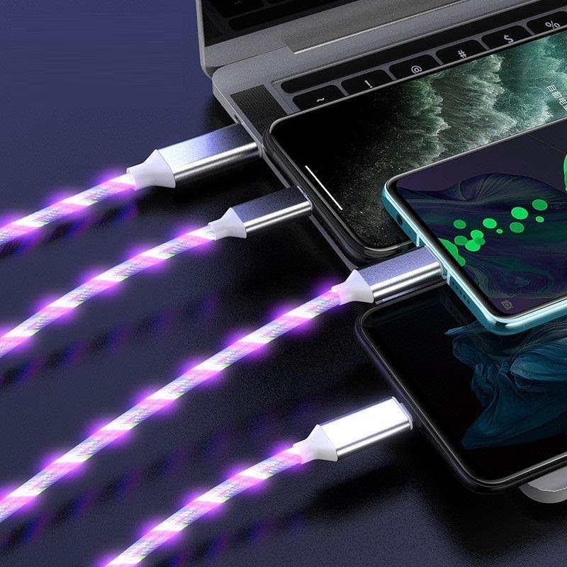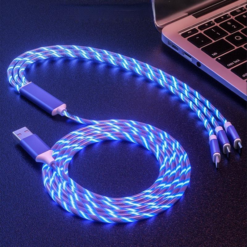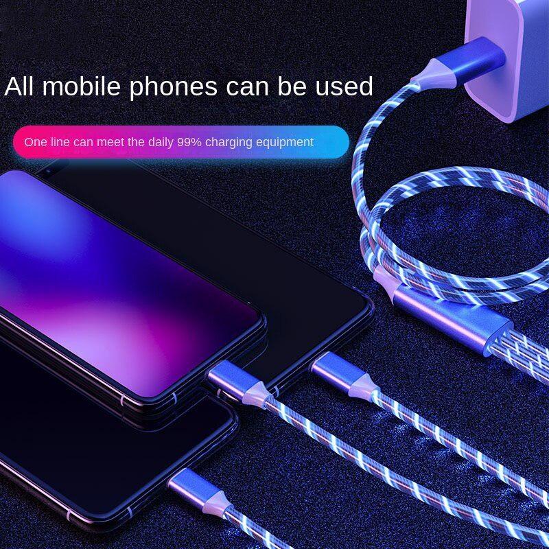 Кабель передачи данных 3 в 1, двойного назначения для зарядки и передачи данных, многоцелевой для одной линии, длина кабеля 1 м, цветной световой поток