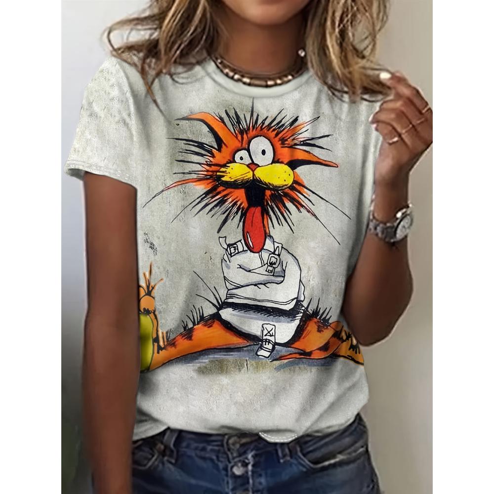 Летняя забавная женская футболка с изображением животных, футболка с 3D-принтом, персонажи, милые животные, Harajuku, повседневный топ с короткими рукавами, женская одежда больших размеров