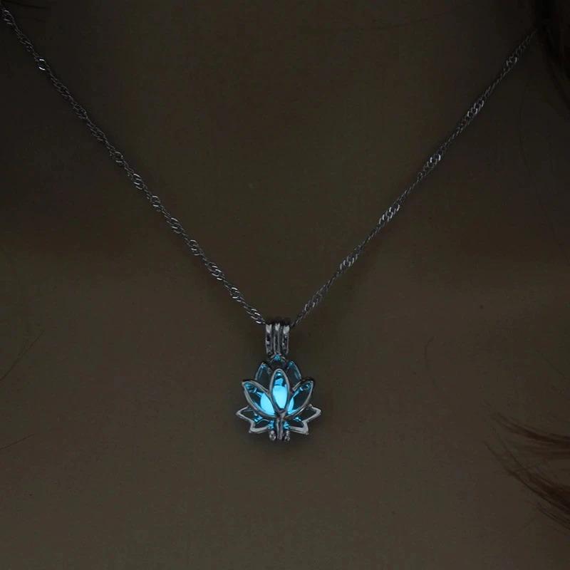 Трехцветный ретро светящийся кулон с лунным камнем, ожерелье, женские украшения, длинная цепочка, кулон в виде лотоса, Будды, ожерелье, подарок