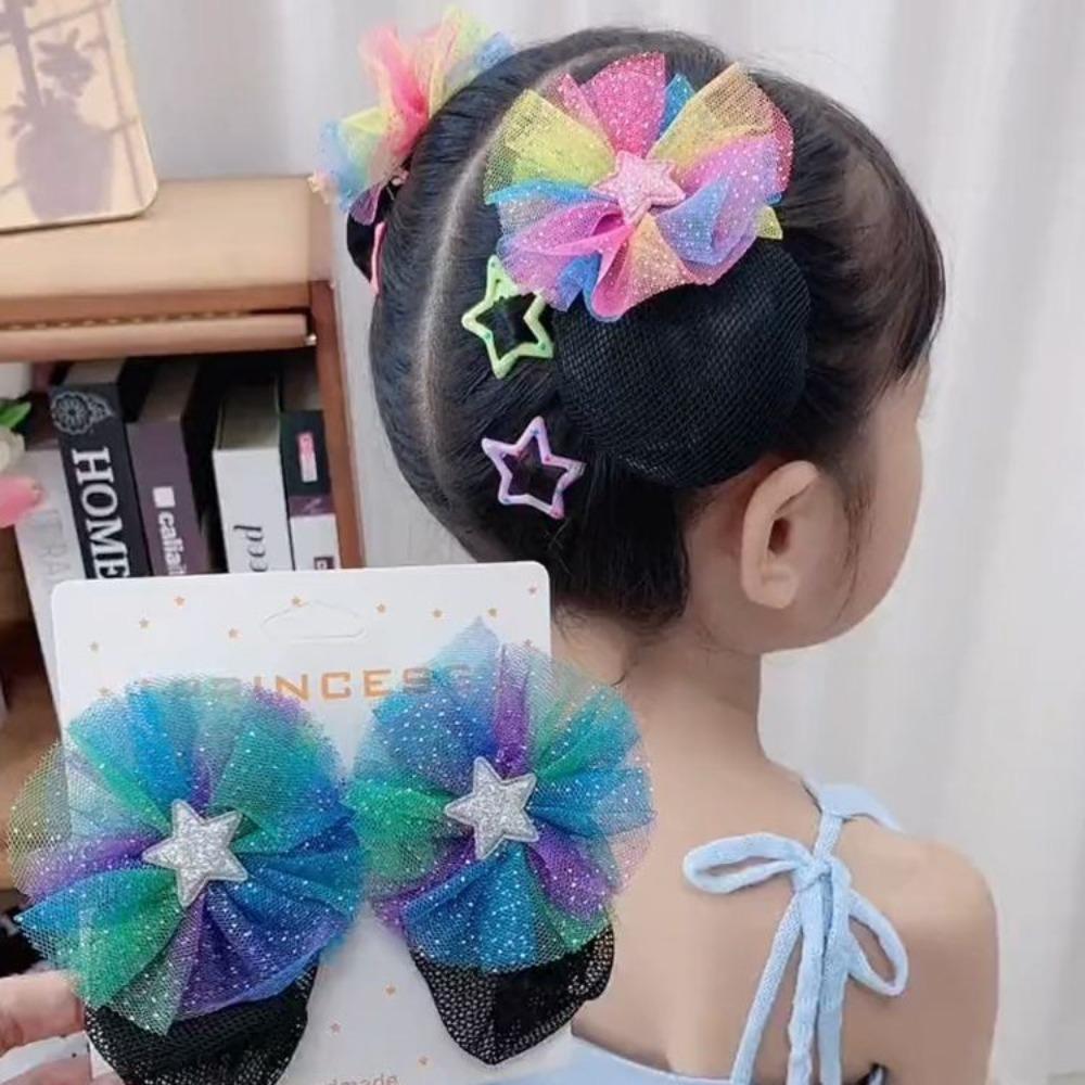 2шт пружинная застежка балетная сетка для волос звезда бант корейский пучок снуд милая эластичная сетка для волос для девочек дети