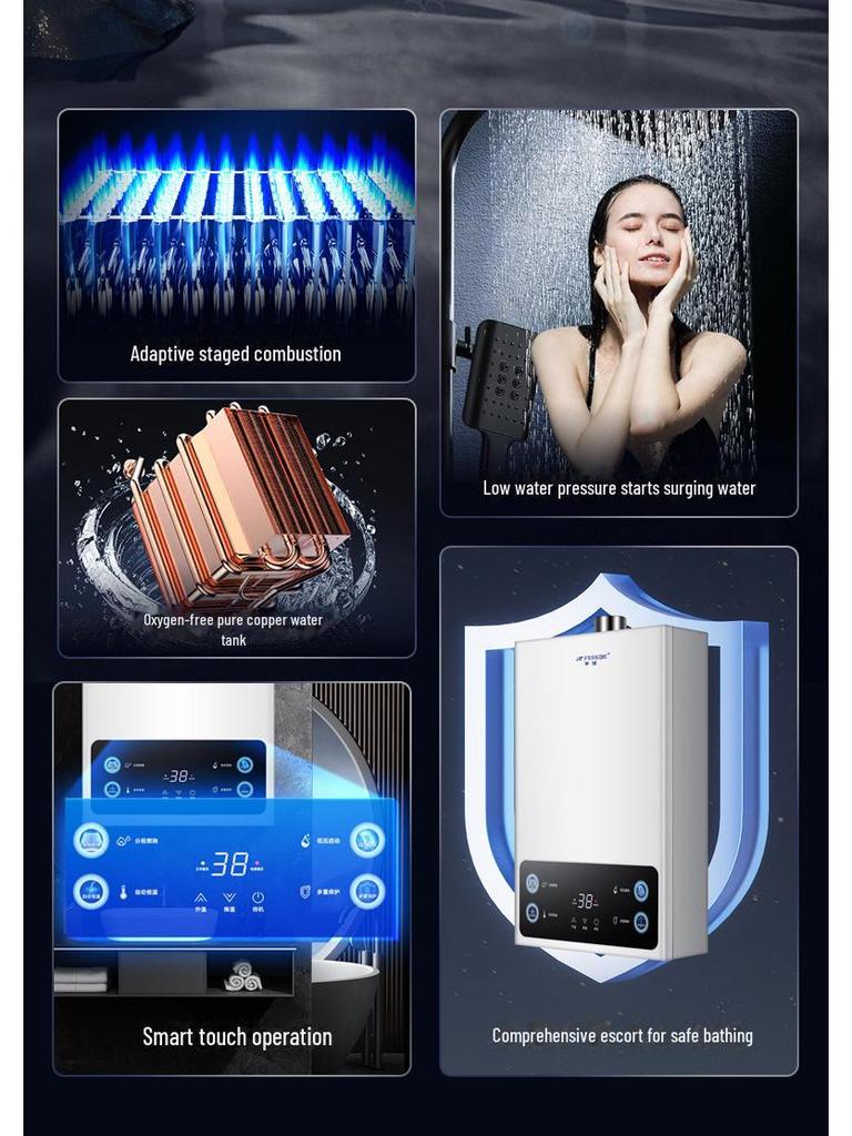 Водонагреватель Hemisphere 12L/16L на природном газе, электрический, постоянная температура, принудительный выхлоп, сбалансированный LPG