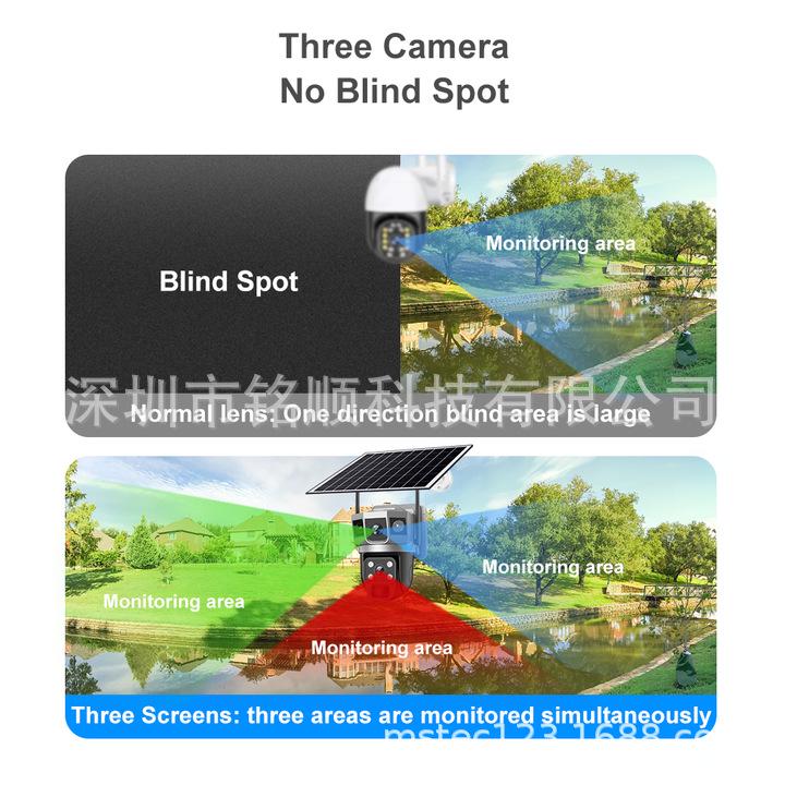 V380 Солнечная 3-глазковая 4G Беспроводная Уличная Водонепроницаемая Камера Наблюдения