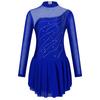 Платье для фигурного катания для девочек с длинным рукавом, воротником-стойкой, блестками и стразами, с открытой спиной, в стиле пэчворк, танцевальный костюм — купить товар онлайн с бесплатной доставкой по всему миру!