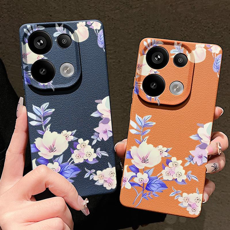 Мягкий чехол из ТПУ с цветочным принтом и текстурой из кожи для Xiaomi 13T Pro Poco X7 X6 M6 Pro Redmi Note 14 13 Pro 12 11, тонкий матовый противоударный чехол для телефона