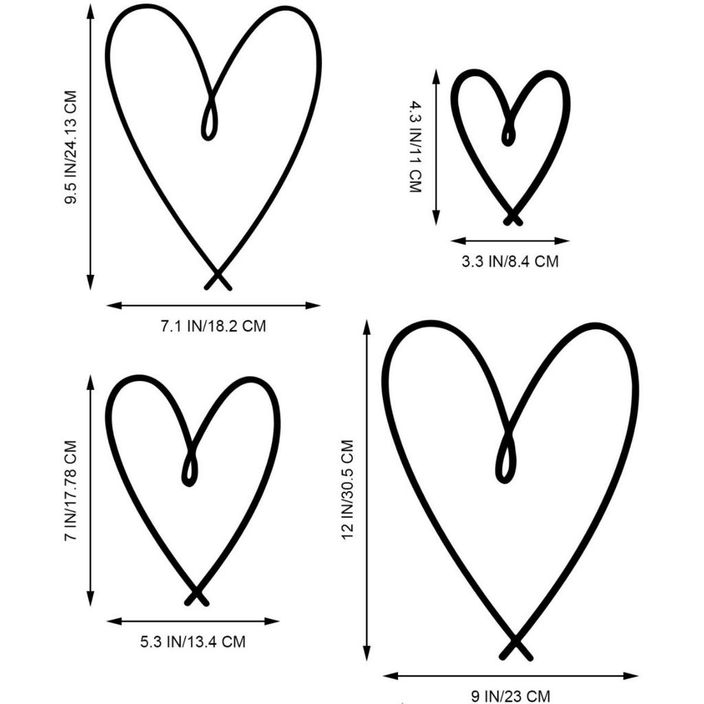 Соответствующий размер: есть 4 размера металлических украшений в форме сердца, размеры 8,4 x 11 см/3,3 x 4,3 дюйма, 13,2 x 17,6 см/5,2 x 7 дюймов, 18,3 x 24,2 см/7,2 x 9,5 дюйма, 23,3 x 30,8 см/9,2 x 12 дюймов, а их толщина приблизительно. 1 мм/0,04 дюйма, который может привлечь внимание вас, вашей семьи и ваших друзей, не занимая при этом слишком много места.