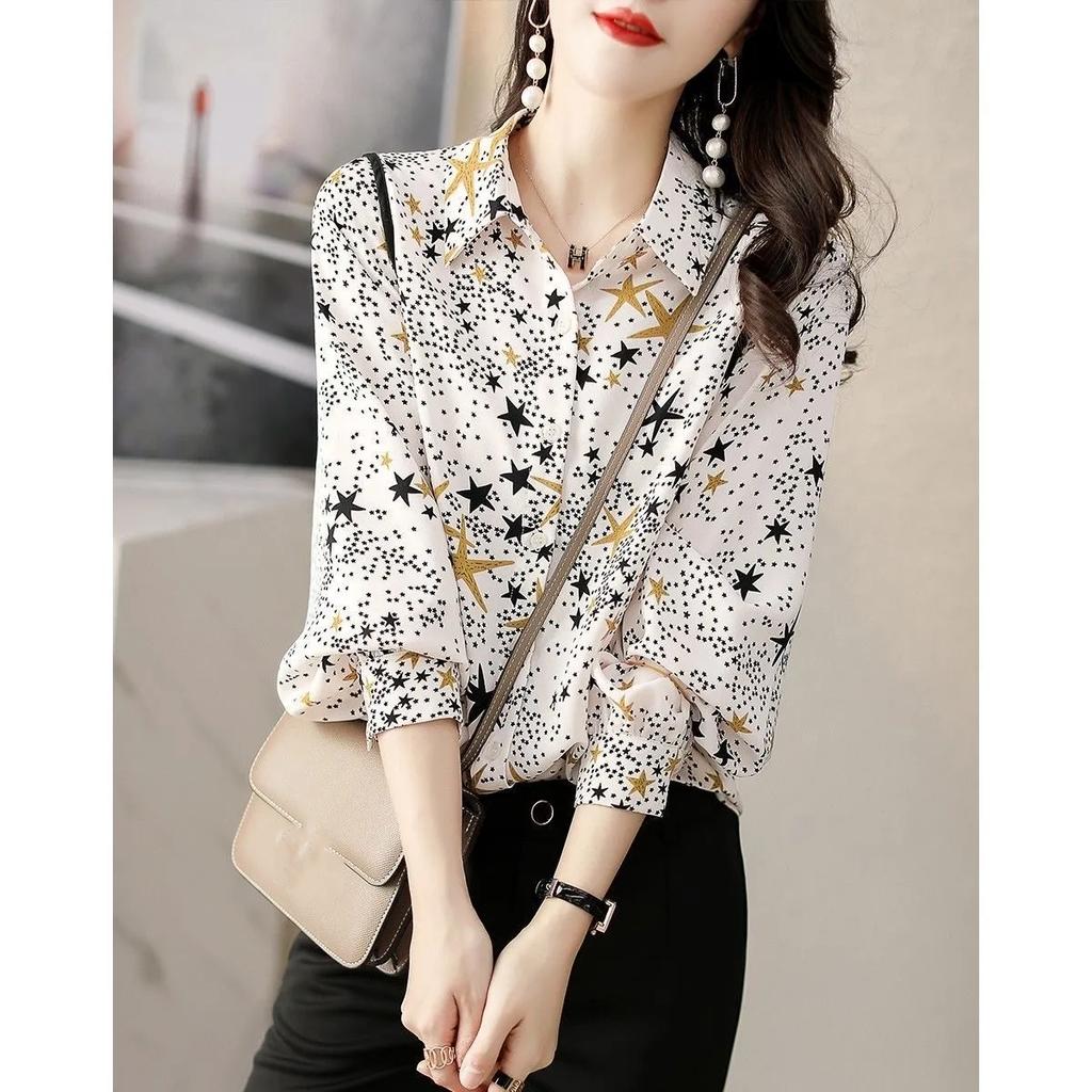 Женская рубашка из шифона с длинными рукавами и принтом, летняя свежая свободная тонкая рубашка для поездок на работу — купить товар онлайн с бесплатной доставкой по всему миру!