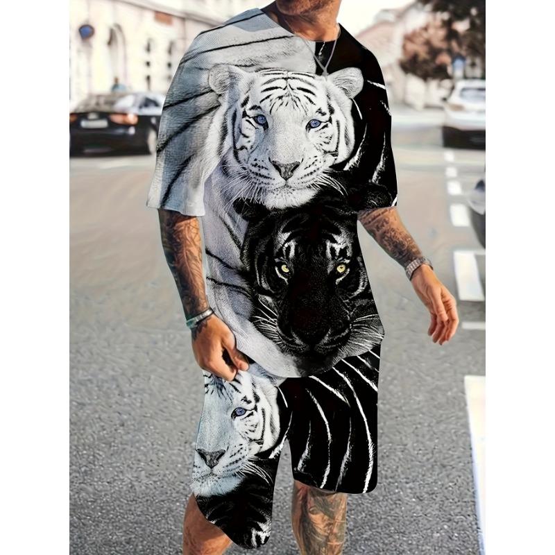 Мужская удобная повседневная футболка с круглым вырезом и коротким рукавом с принтом тигра и шорты — купить товар онлайн с бесплатной доставкой по всему миру!