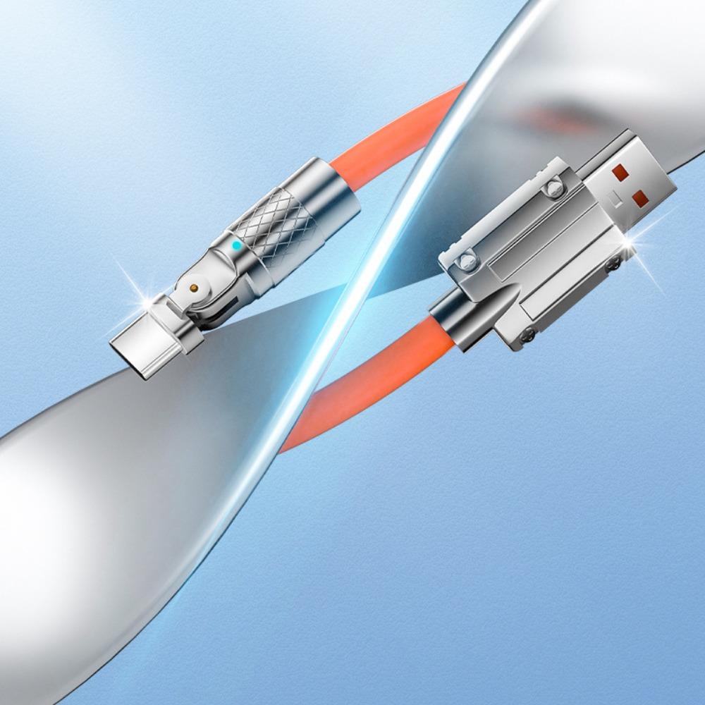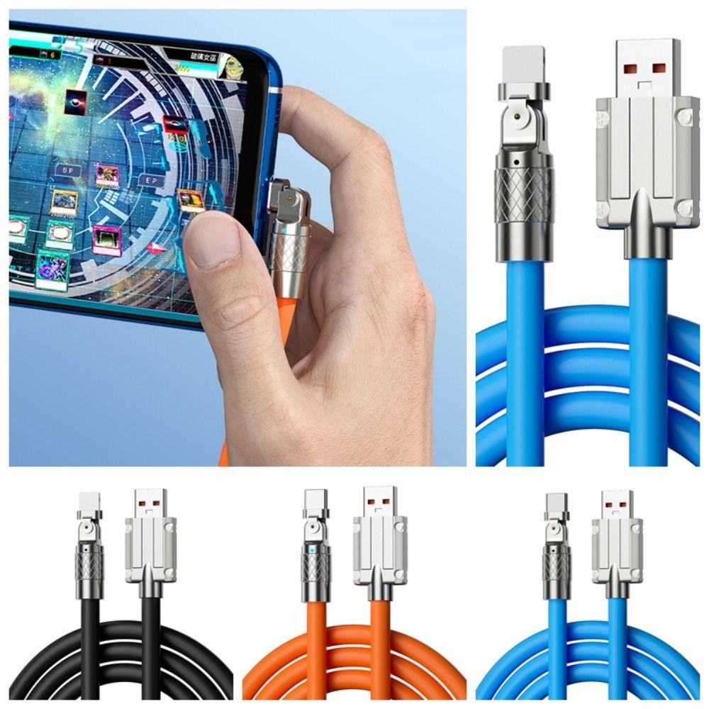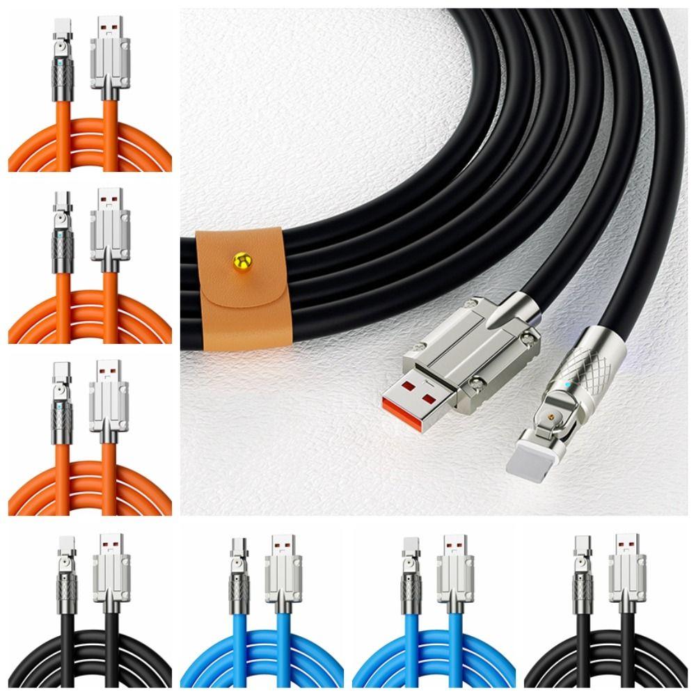 120W 180 Degree Silicone Data Cable USB A Elbow Zinc Zinc Zinc Alloy Data Line Mobile Phone Accessories