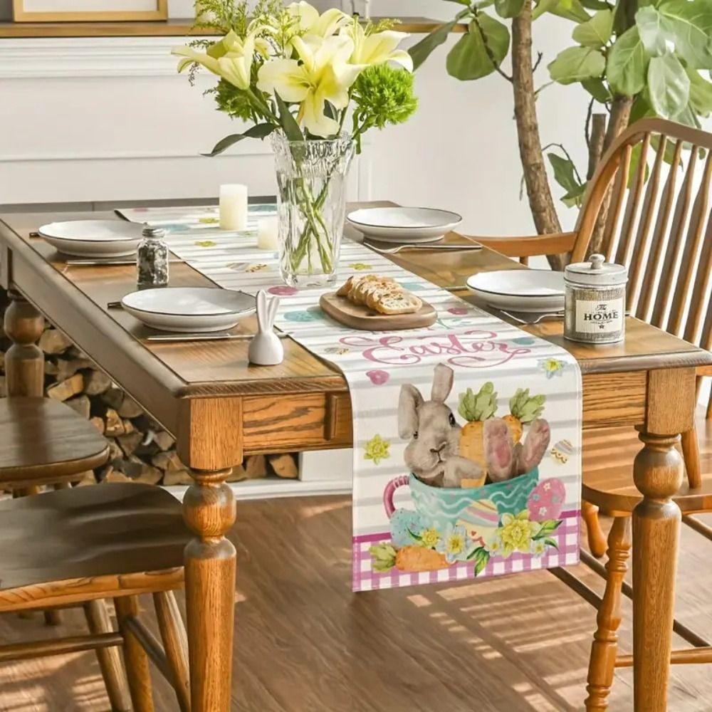 Винтажная пасхальная скатерть-кролик, маслостойкая, для обеденного стола, льняная скатерть-кролик, вечеринка