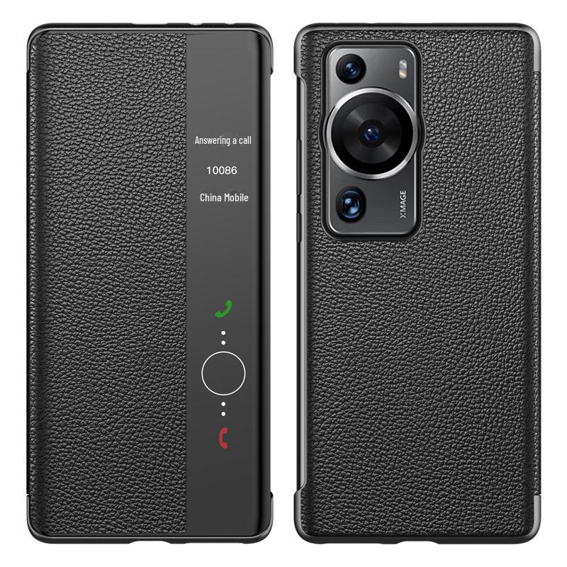 Чехол-книжка из натуральной воловьей кожи первого слоя с сенсорным окном для Huawei P60/P60 Pro — купить товар онлайн с бесплатной доставкой по всему миру!