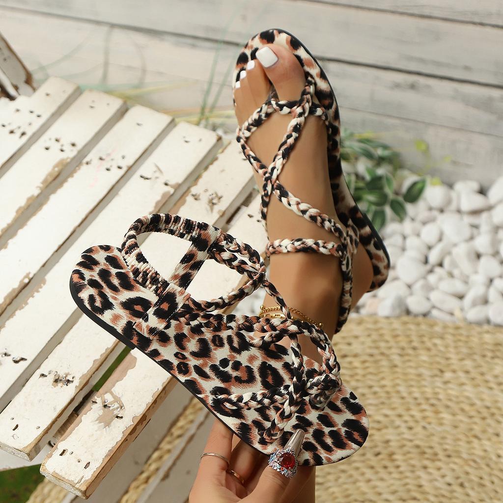 Сексуальные сандалии с леопардовым принтом, женские летние шлепанцы больших размеров, нескользящие пляжные шлепанцы, модные уличные тапочки