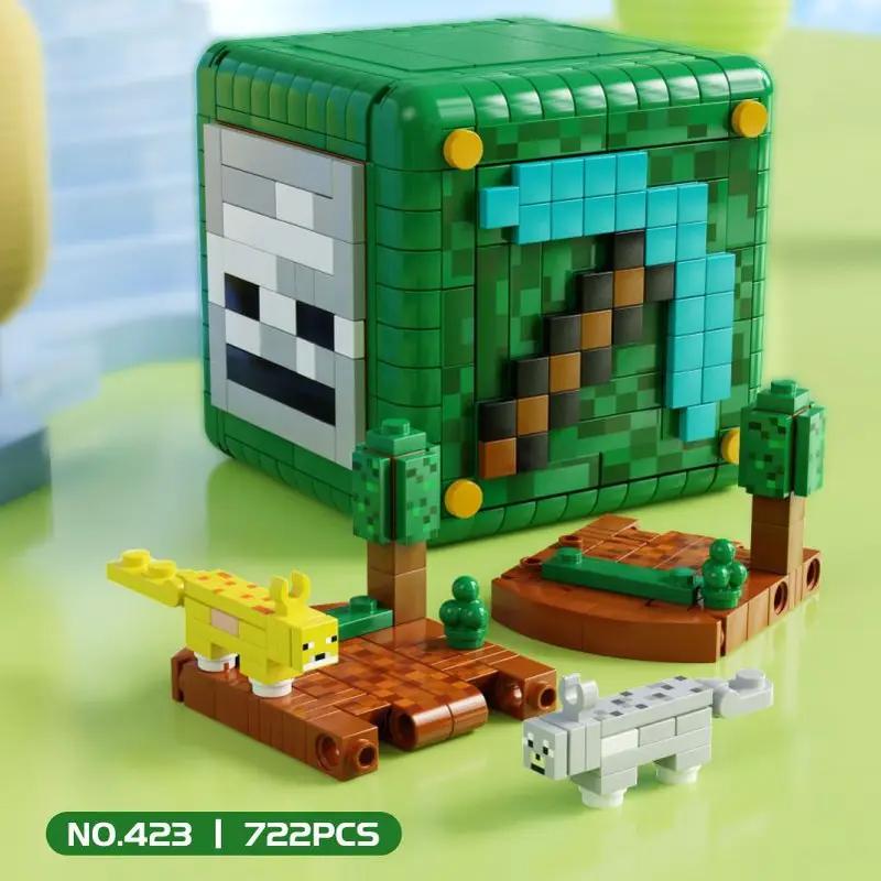 722PCS My World Cube Steve CQuestion Mark Box Деформация Орган Строительный блок Сборка Детская игрушка Подарок на день рождения