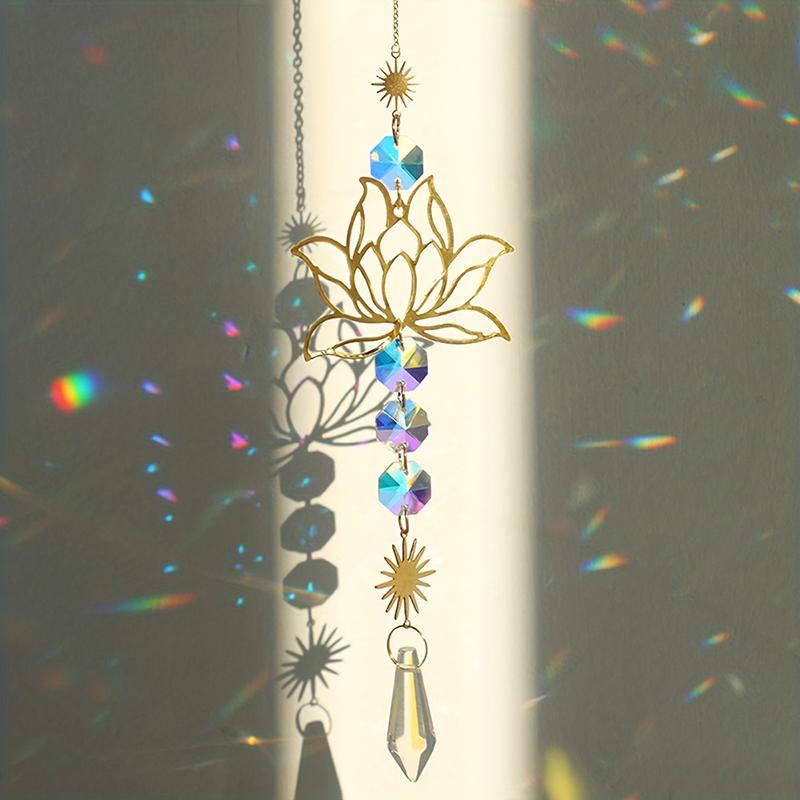 Металлический лотос и искусственный кристалл ловец солнца подвеска ручной работы применимый для дома подвеска колокольчик для уличного садового растения украшение
