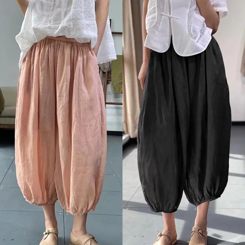 Большие летние шикарные повседневные женские хлопковые шаровары длиной до щиколотки в Корейском стиле, женские свободные плиссированные брюки большого размера