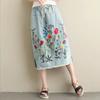 Весенняя маленькая свежая свободная юбка большого размера в этническом стиле из денима Heavy Industry с вышитой эластичной талией и большим карманом с разрезом