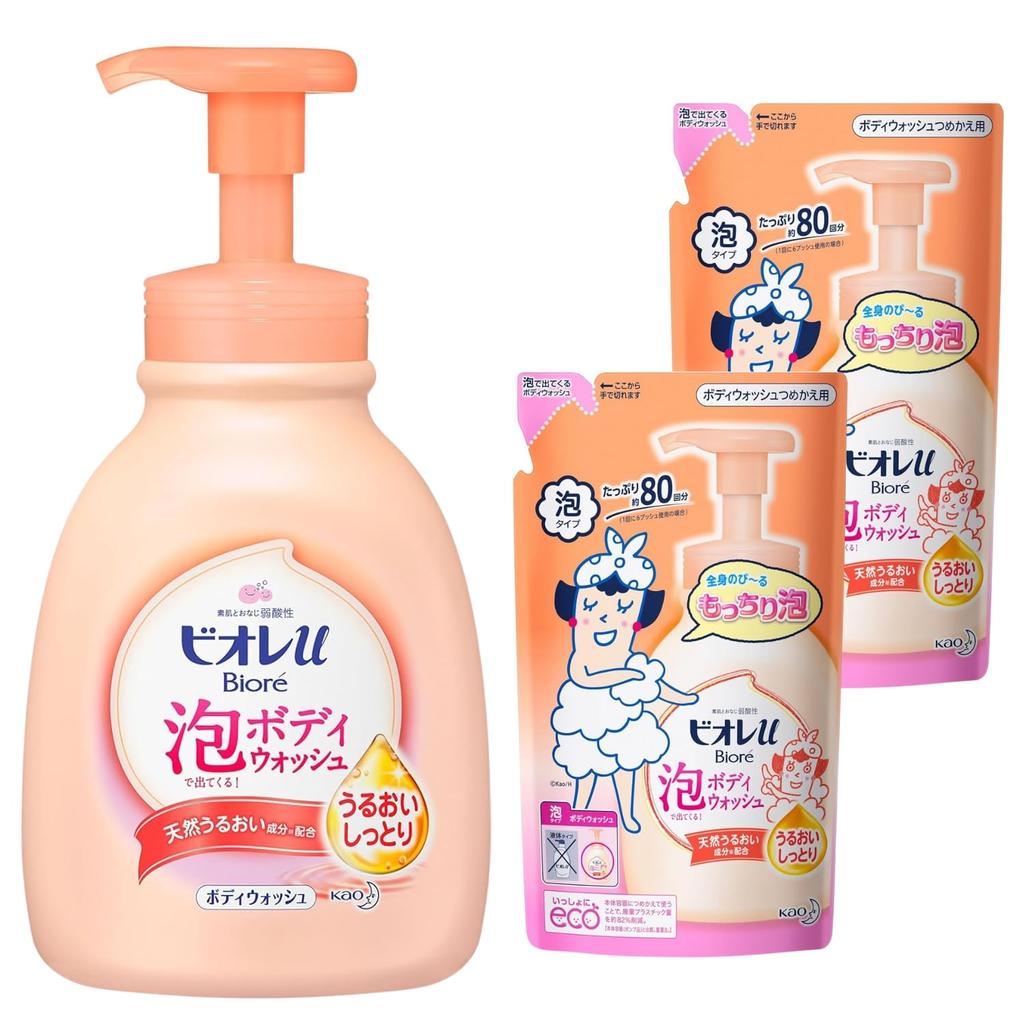 Biore U Пенка для тела Увлажняющая для тела 600 мл Запасной блок 480 мл Бонус в комплекте 1 флакон + 2 запасных блока + + +