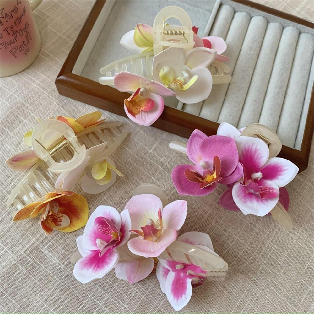 Заколка для волос из ткани «Орхидея», бабочка, большая заколка в виде акулы, персонализированный цветок, женская заколка для волос