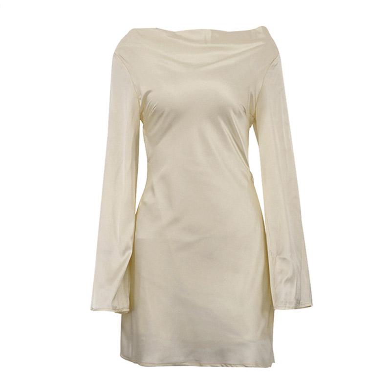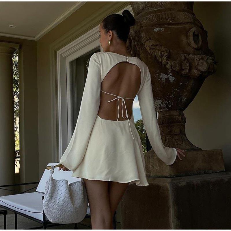 Атласное мини-платье со шнуровкой и открытой спиной, женское элегантное модное сексуальное платье с длинным рукавом, женское ажурное вечернее платье Ne