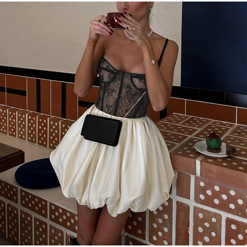 Женское кружевное платье без бретелек с сексуальным контрастным принтом и высокой талией, пышное мини-платье А-силуэта, женское платье 2025 года, весна-лето, новое клубное платье