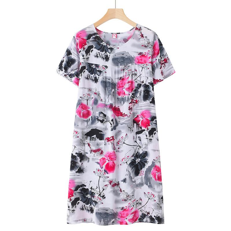 Пижамы для людей среднего и пожилого возраста Домашняя одежда с короткими рукавами Женская одежда для сна на весну и лето для пожилых людей Свободная домашняя одежда Платья
