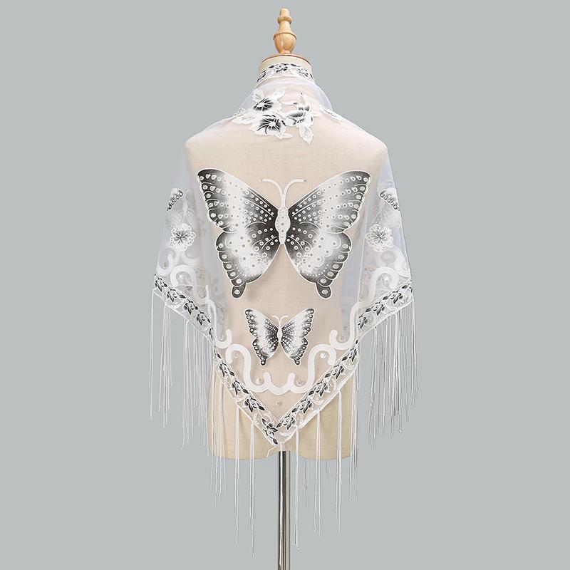 Кружевной шарф с принтом в виде бабочки, треугольная шаль с кисточками, элегантный женский летний однотонный блестящий шарф, модная накидка 150*65 см — купить товар онлайн с бесплатной доставкой по всему миру!