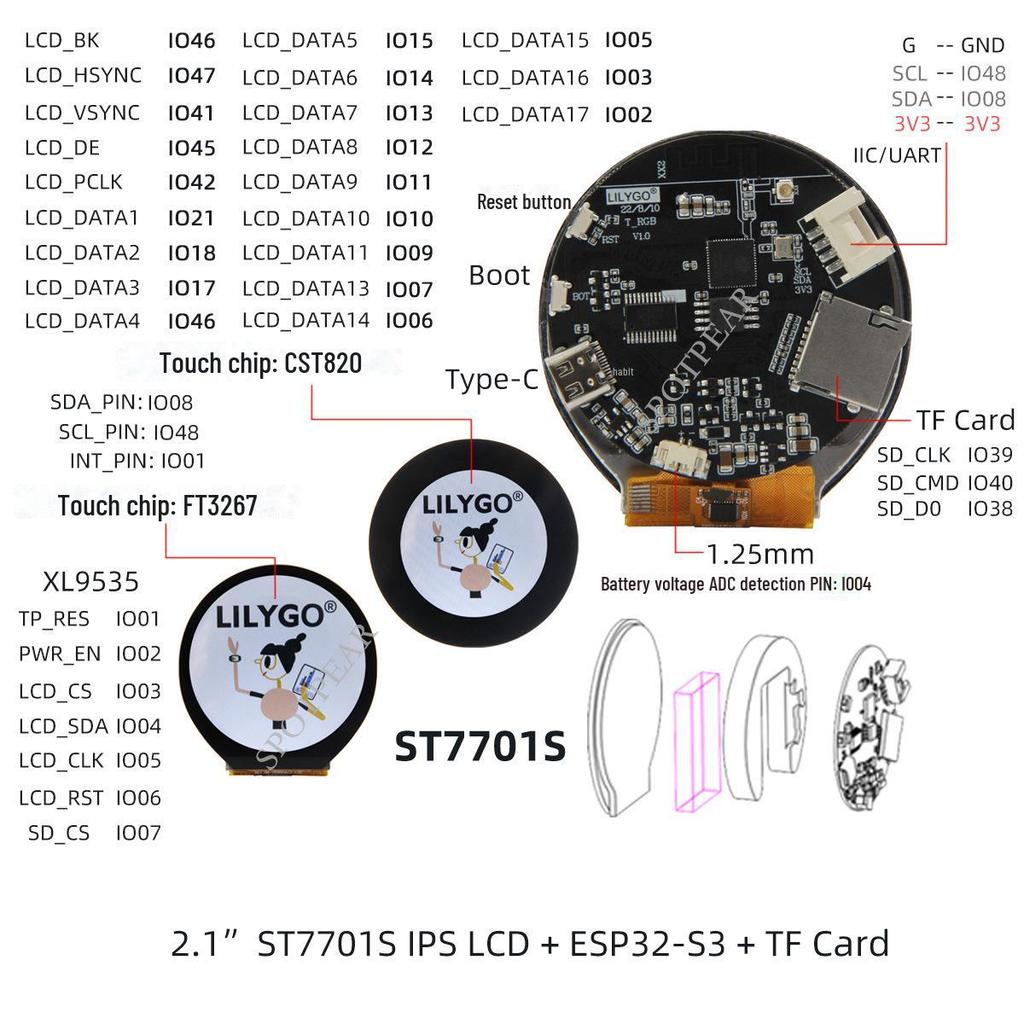 2,1-дюймовая круглая плата разработки ESP32-S3 с сенсорным ЖК-дисплеем ST7701S