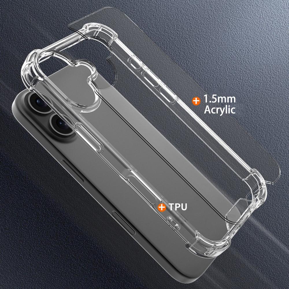 For iPhone 16 Clear Phone Case TPU+Acrylic 1.5mm Shockproof Back Cover