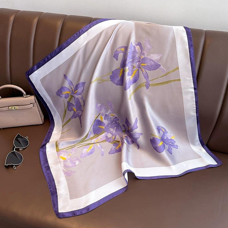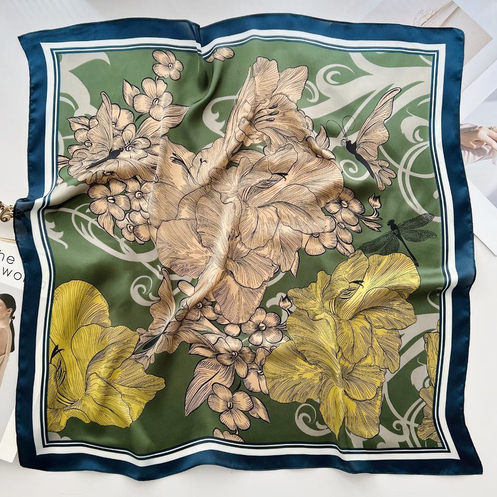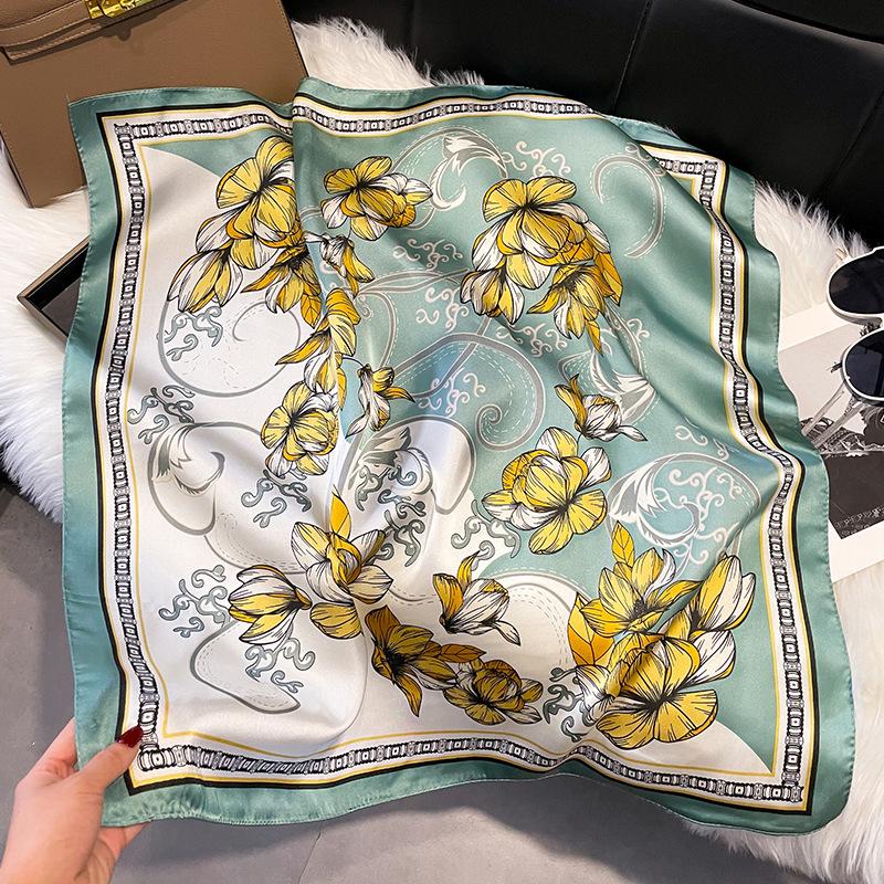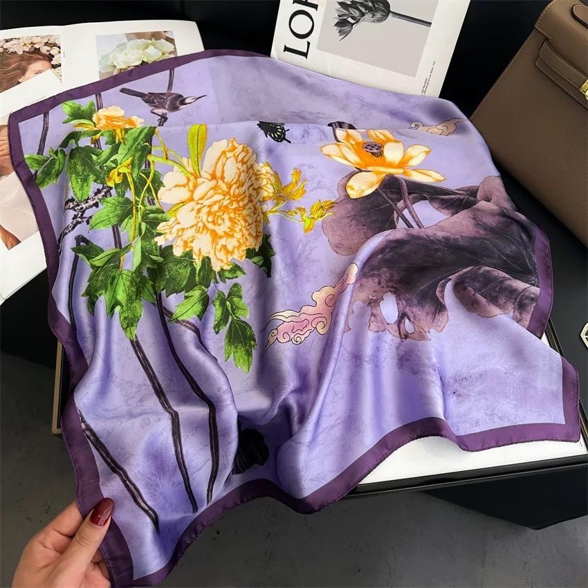 Новый шелковый квадратный шарф для волос Фуляр Пашмина Шали Накидки Шейные платки Женский цветочный Бандана Повязки на голову Цветочный Буфандас Женский