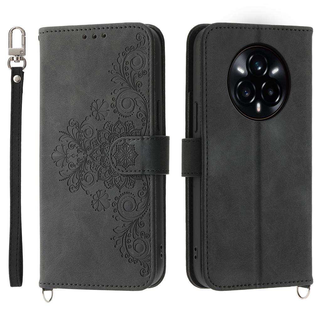 For Realme 14 Pro 5G Case Flower Pattern PU Leather Wallet Phone Cover with Strap