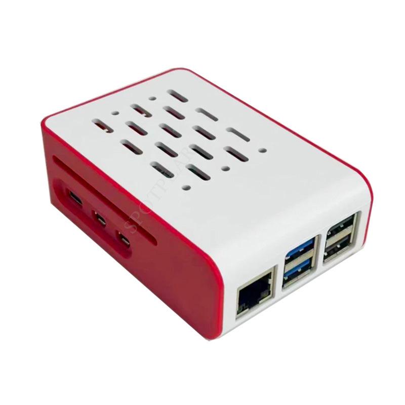 Красно-белый защитный чехол для Raspberry Pi 5, совместимый с официальным вентилятором Pi5 Active Cooler.