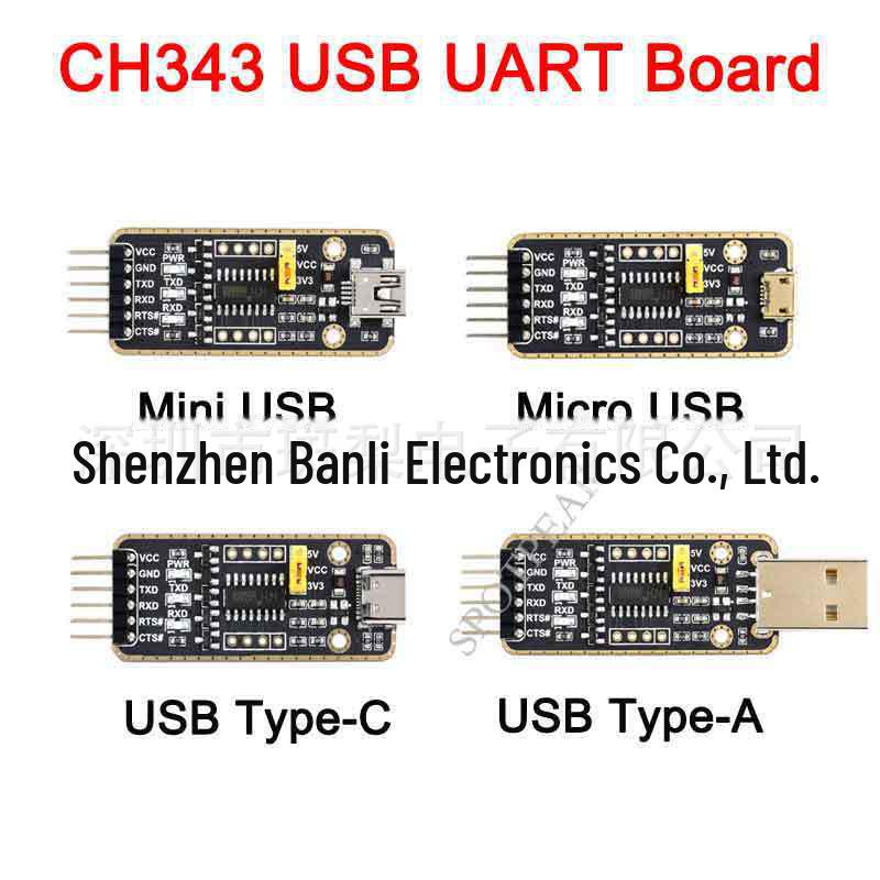 CH343 USB to UART Serial Module with Micro, Mini, Type-A, Type-C Interfaces