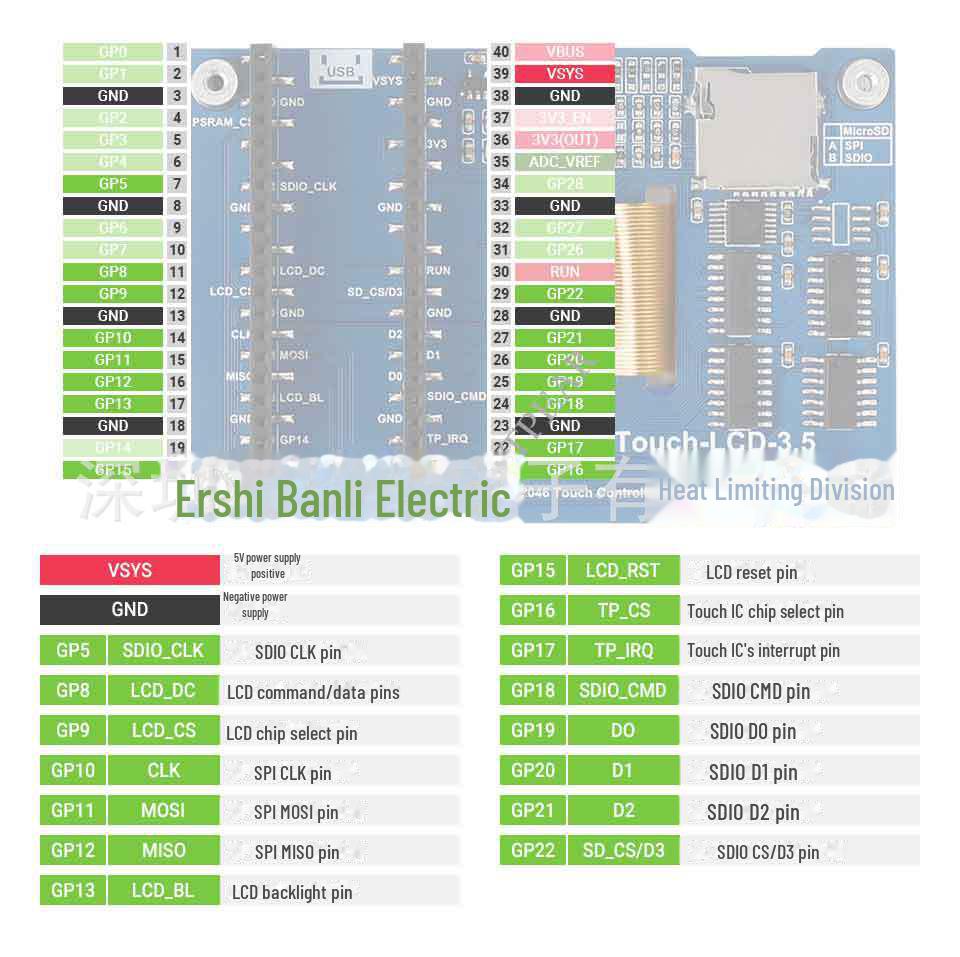 Модуль ЖК-дисплея Raspberry Pi Pico 3,5", 65 тыс. цветов, 480×320 пикселей, SPI.