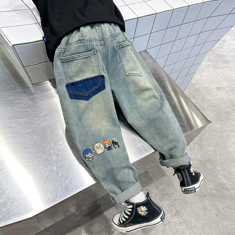 Повседневные джинсы для мальчиков с мультяшной вышивкой, весна и осень