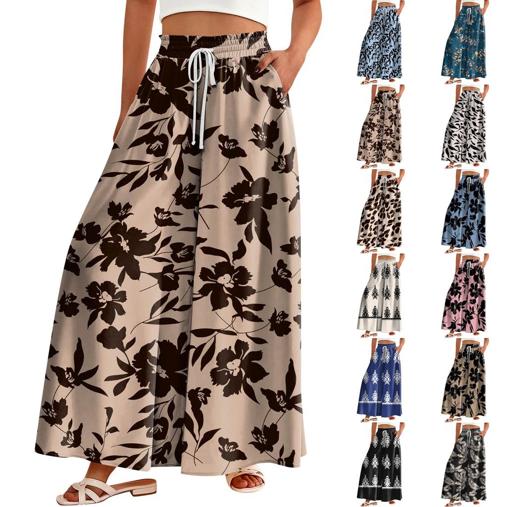 Женские брюки-палаццо с цветочным принтом в стиле бохо, широкие брюки, летние пляжные струящиеся брюки с высокой талией и карманами — купить товар онлайн с бесплатной доставкой до всему миру!