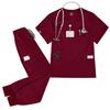 Женский однотонный топ с короткими рукавами и V-образным вырезом, карманами, рабочая одежда, комплект из двух предметов