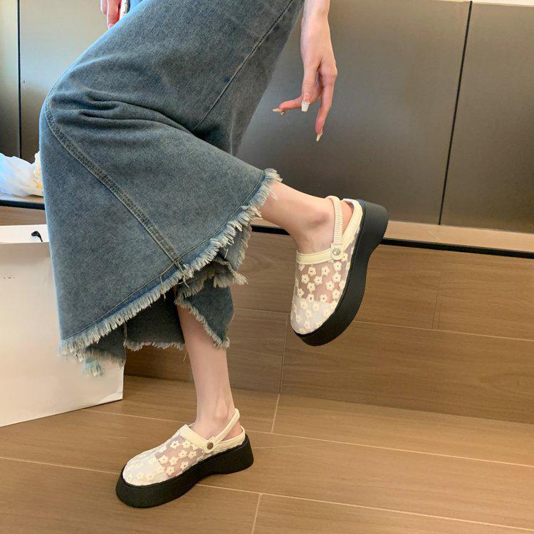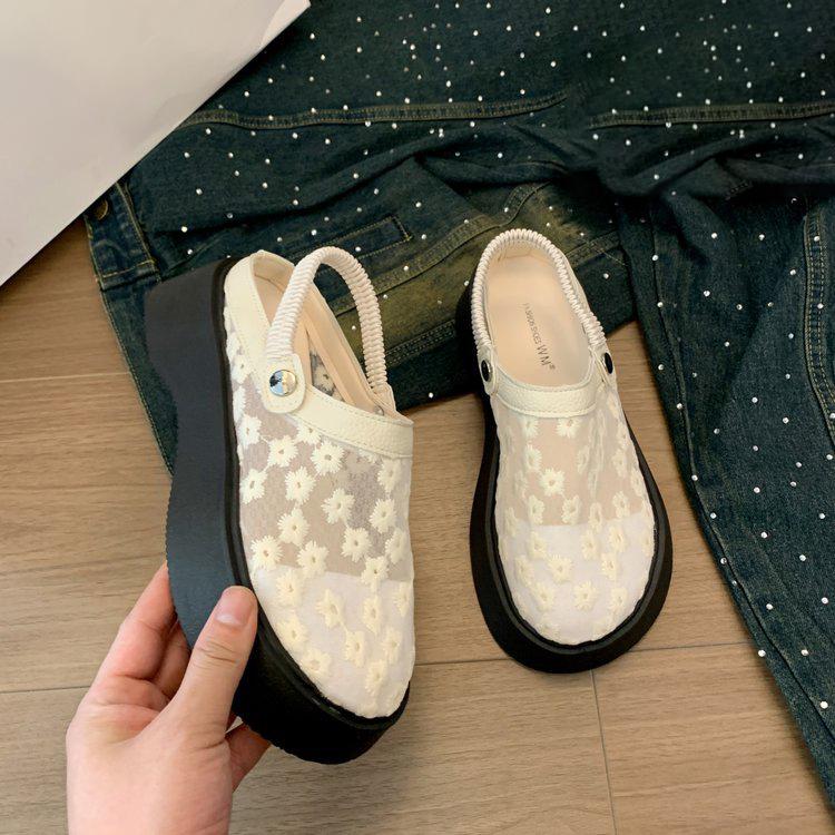 Сандалии Baotou 2024 года, летняя новая дышащая сетчатая толстая подошва, увеличивающая рост, женская обувь, модная и универсальная, повседневная обувь Two on Sandals
