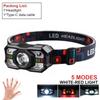 Яркий светодиодный налобный фонарь, перезаряжаемый налобный фонарь с красным светом, водонепроницаемый налобный фонарь с датчиком движения, для кемпинга, ходовые огни