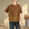 DIMANAF 2025 New Summer Plus Size T-Shirt Women Short Sleeve Solid O-Neck Vintage Loose Tops Tees Maxi