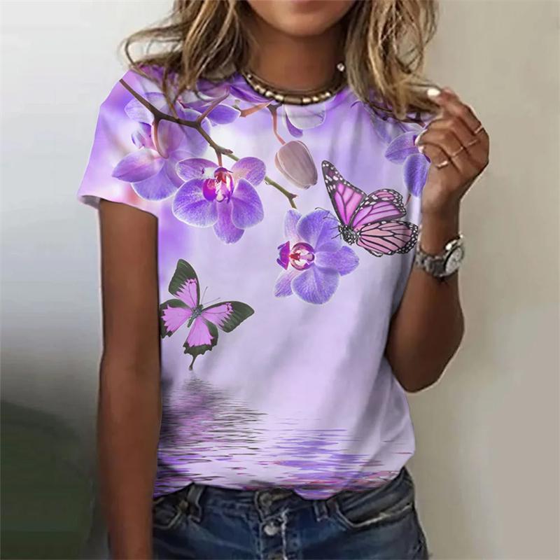 Летний топ с круглым вырезом и 3D-цветочным принтом, модные повседневные женские футболки с короткими рукавами — купить товар онлайн с бесплатной доставкой по всему миру!