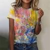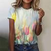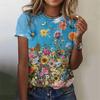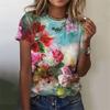 Летний топ с круглым вырезом и 3D-цветочным принтом, модные повседневные женские футболки с короткими рукавами