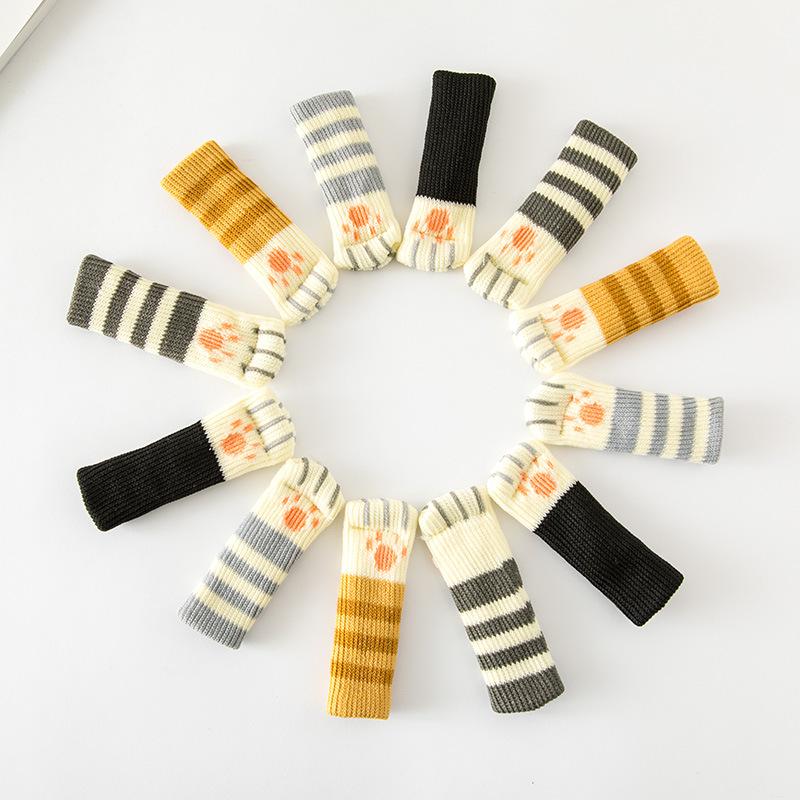 4 шт. Чехол для ножек стола и стула, вязаный шерстяной чехол для дверной ручки, нескользящий и износостойкий, бесшумный утолщенный чехол для стула с изображением кошки, подкладка для ног