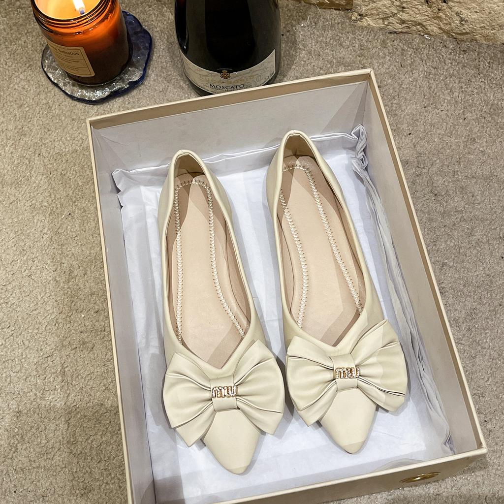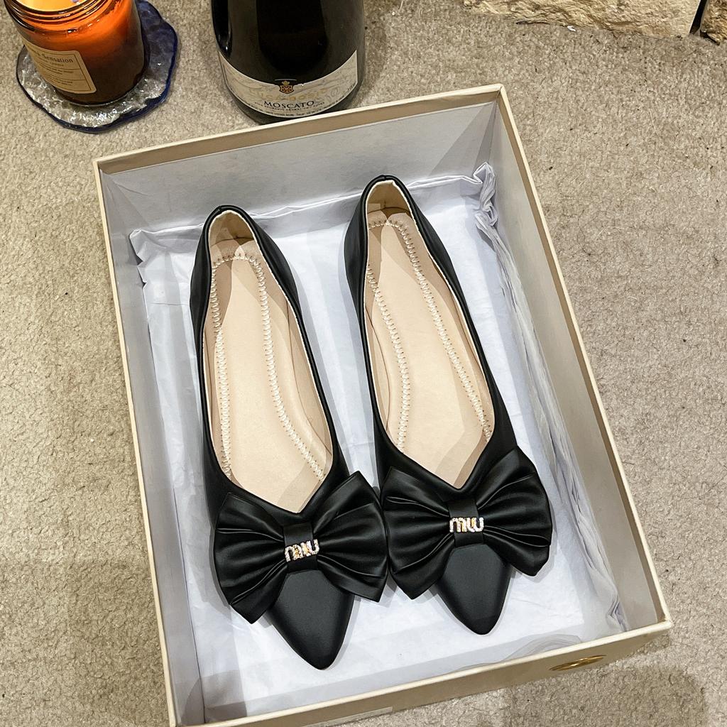 Bow single shoes women's 2025 spring new pointed single shoes women's with skirts soft-soled ladyshoes Korean version Doudou shoes women