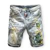 Мужские модные свободные джинсовые шорты с прямыми отверстиями, модные лоскутные летние рваные джинсовые шорты