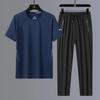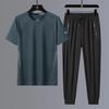 Новая летняя футболка, быстросохнущая ткань, мужские спортивные штаны из ледяного шелка для отдыха, комплект из двух предметов