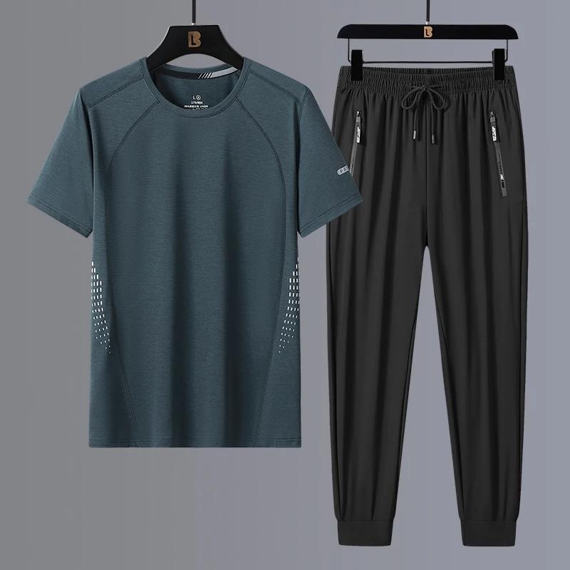 Новая летняя футболка, быстросохнущая ткань, мужские спортивные штаны из ледяного шелка для отдыха, комплект из двух предметов — купить товар онлайн с бесплатной доставкой до всему миру!