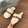 Baotou Mao Mao Slippers Women's Wear 2024 Autumn New Low Heel Milk Almost Fashion Design Sense Square Buckle Home Cotton Mop